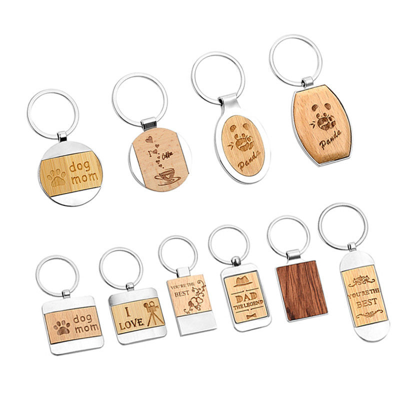 พวงกุญแจไม้แกะสลักระเหิดโลหะผสมสังกะสีเปล่าไม้ไผ่ Beechwood พวงกุญแจ